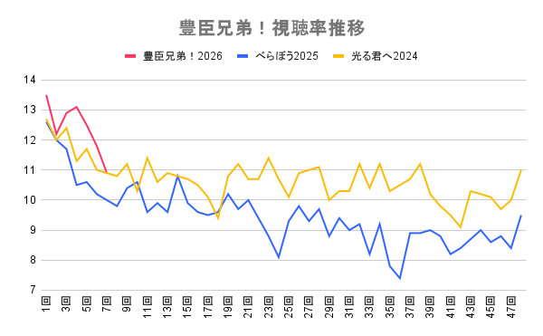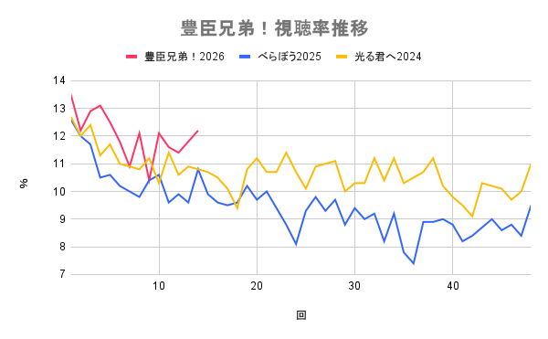 2026年大河『豊臣兄弟!』視聴率推移表と比較グラフ